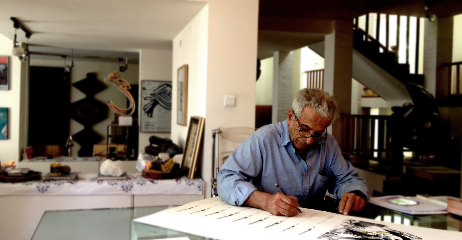 ***Parviz Tanavoli, after decades of following, tracking and searching for these “Farangi Women”, now standing side by side of them, admiring them, telling stories for them, reading poems for them and showing us some fragments of his life spending with them. His self-portraits with these guests to our houses, on our rugs and carpets, and our paintings for over a century, are the most poetic story from him.