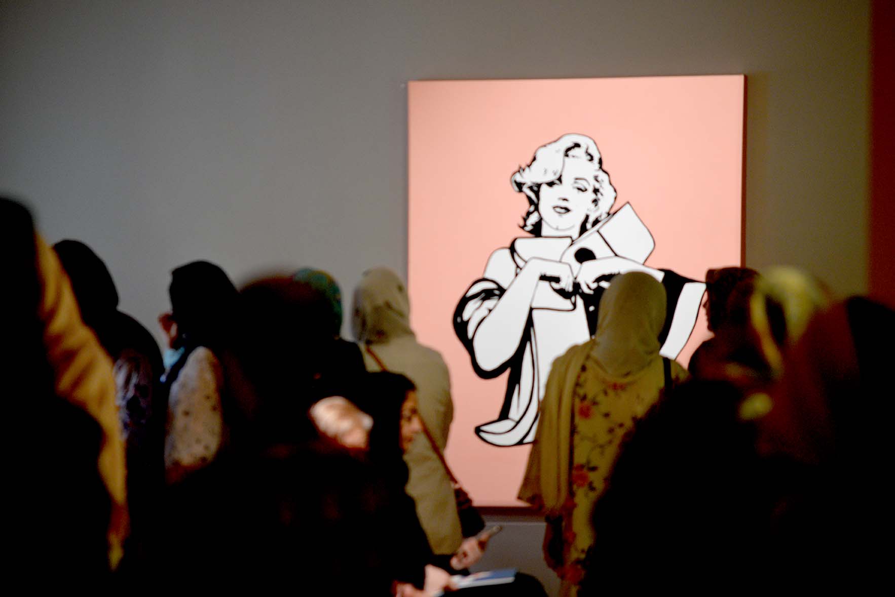 The exhibition “Universal Icons” alongside the exhibition “Exercise Writing” celebrates the fiftieth anniversary of Pop Art in Iran as well as Iranian Pop Art in the world. It also happens to mark the fiftieth anniversary of Parviz Tanavoli’s “Heech”.